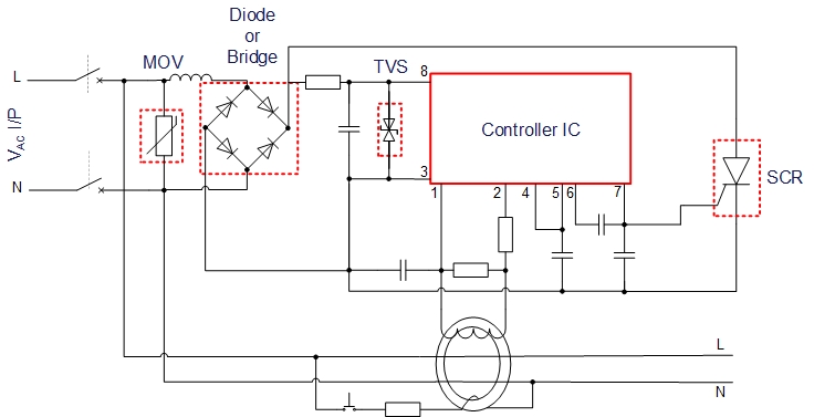 漏電保護器,簡稱漏電開關,又叫漏電斷路器,主要是用來在設備發(fā)生漏電故障時以及對有致命危險的人身觸電保護,具有過載和短路保護功能,可用來保護線路或負載的過載和短路,亦可在正常情況下作為線路的不頻繁轉(zhuǎn)換啟動之用。 目前市場上使用的漏電保護裝置種類繁多,但大體的原理都相差不大。漏電保護器主要是由三部分組成:檢測元件、中間放大環(huán)節(jié)、操作執(zhí)行機構(gòu) 1. 檢測元件:由電流互感器組成,檢測漏電電流并發(fā)出信號 2. 放大環(huán)節(jié):將微弱的漏電信號放大,按裝置不同可采用機械式或電子式 3. 執(zhí)行機構(gòu):收到信號可控硅由斷開狀態(tài)變?yōu)閷顟B(tài),主線圈通電后,主開關由閉合狀態(tài)轉(zhuǎn)換為斷開狀態(tài),從而切斷電源 應用于漏電保護器領域,捷捷微電 能提供比較齊全的元件解決方案。比如:AC 輸入端防浪涌的壓敏電阻(MOV)、對交流進行整流的高壓整流二極管 (Diode) 或者是整流橋(Bridge)、對電源端進行過壓防護的瞬態(tài)抑制二極管(TVS)、整個電路的控制核心集成電路(IC)、電路動作執(zhí)行機構(gòu)(SCR)等。