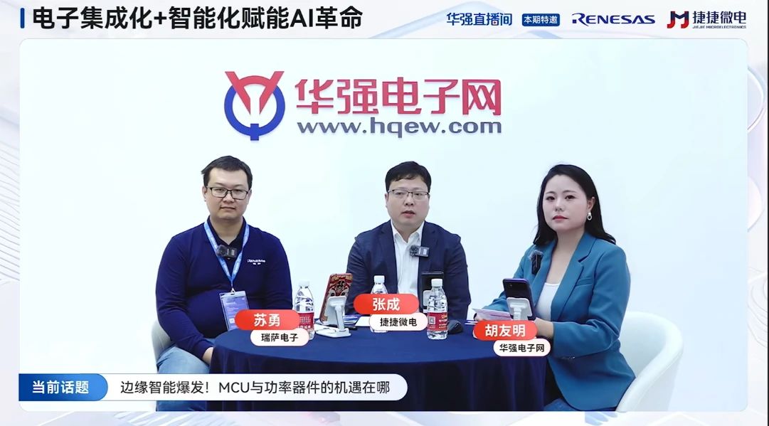 ? ? 捷捷微電 MOSFET市場部部長?張成與瑞薩電子嵌入式處理器事業(yè)部高級專家?蘇勇一同做客華強(qiáng)電子網(wǎng),圍繞“電子集成化+智能化賦能AI革命”、“AI爆發(fā),功率器件如何突破現(xiàn)有技術(shù)?”等主題進(jìn)行了直播講解,在線觀眾熱情十足,討論激烈。
