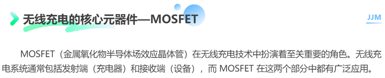 MOSFET(金屬氧化物半導(dǎo)體場(chǎng)效應(yīng)晶體管)在無(wú)線(xiàn)充電技術(shù)中扮演著至關(guān)重要的角色。無(wú)線(xiàn)充電系統(tǒng)通常包括發(fā)射端(充電器)和接收端(設(shè)備),而 MOSFET 在這兩個(gè)部分中都有廣泛應(yīng)用。