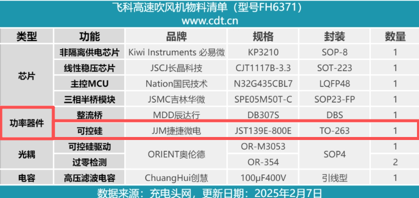 ? ? 在顏值與性能兼具的個(gè)護(hù)賽道,一場(chǎng)關(guān)于「風(fēng)」的革命正在發(fā)生。國(guó)產(chǎn)品牌飛科推出的高速吹風(fēng)機(jī)FH6371,憑借11萬(wàn)轉(zhuǎn)無(wú)刷電機(jī)、六種風(fēng)溫風(fēng)模式組合,迅速圈粉新一代用戶。拆解發(fā)現(xiàn),在這款產(chǎn)品的智能電力調(diào)控核心中,捷捷微電可控硅JST139E-800E如同整個(gè)電路的“智能指揮官”,精準(zhǔn)調(diào)度每一股電流,安靜卻強(qiáng)大地支撐著整個(gè)吹風(fēng)機(jī)的流暢運(yùn)轉(zhuǎn)。