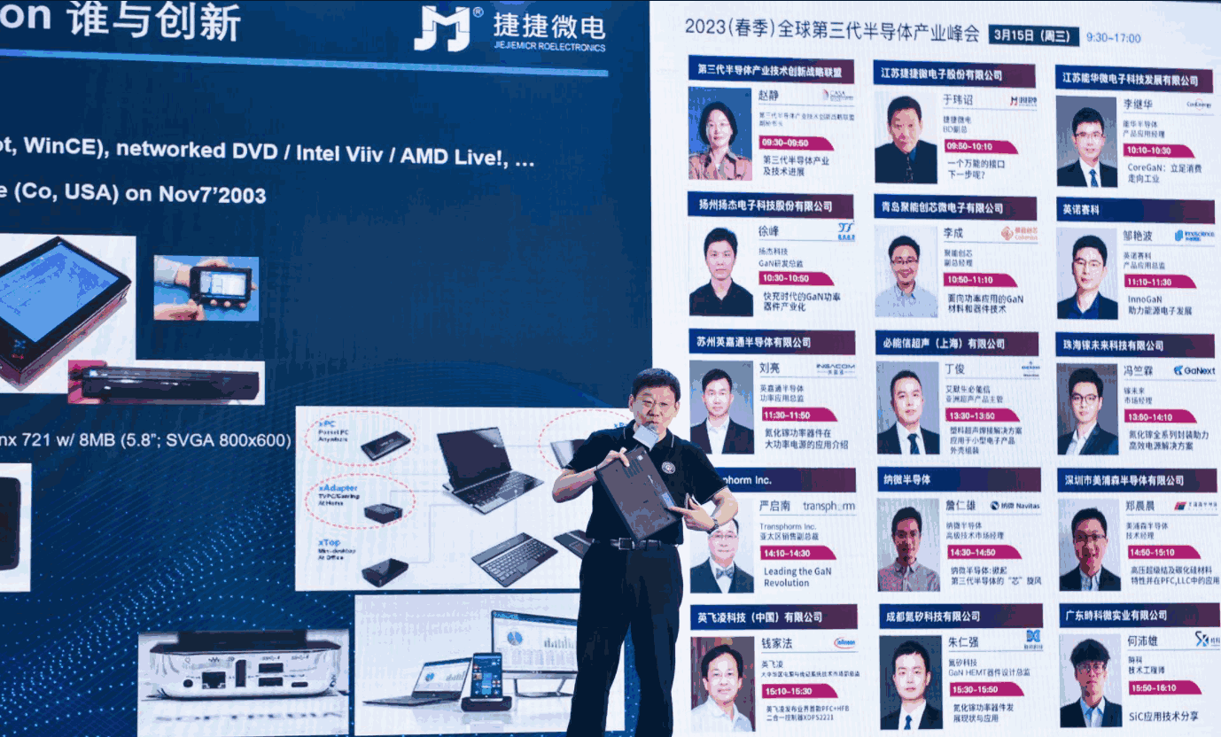 展會(huì)期間,捷捷微電業(yè)務(wù)拓展副總于瑋詔先生受邀出席全球第三代半導(dǎo)體產(chǎn)業(yè)峰會(huì),以《一個(gè)萬能的接口,下一步呢?》為主題發(fā)表演講。介紹了捷捷微電近來來在快充領(lǐng)域的布局,如何為消費(fèi)類電子提供更便攜、更安全的用電。并進(jìn)一步指出移動(dòng) 3C 終端的充電器越來越短小,有限的內(nèi)殼空間使工作溫度升高,造成充電器內(nèi)部所用器件的穩(wěn)定性和效能方面的要求極為嚴(yán)苛。捷捷微電自主研發(fā)的JSFET 及 JHFET 能輕松解決了電路設(shè)計(jì)工程師所面臨,合理成本和高電源轉(zhuǎn)換效率這兩個(gè)沖突的難題。